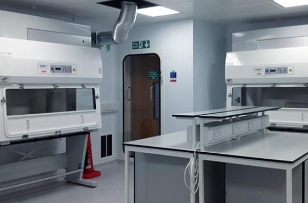 The 200m² facility is split into five areas, comprising an entry/changing lobby, verification laboratory area, sample handling area, storage room and a development laboratory. A bespoke air handling unit provides the required fresh air conditioning and a new fully integrated dedicated HVAC system has been designed and installed by CRC to provide the specified conditions of temperature, pressure, air change rates, system isolation and cleanliness.
